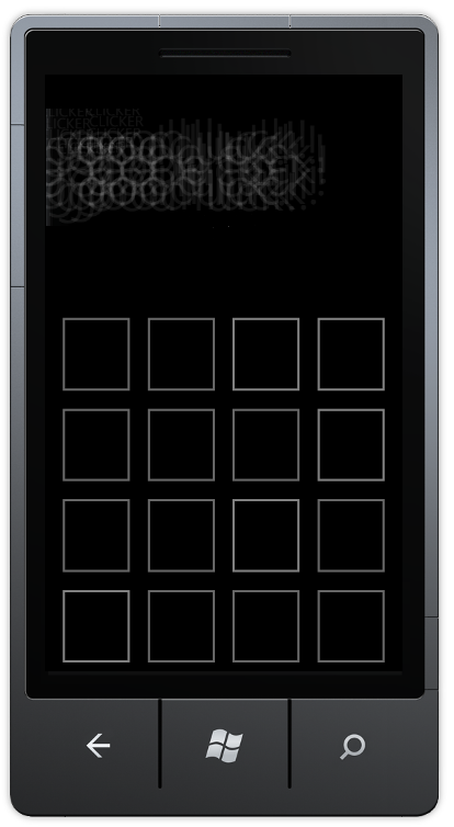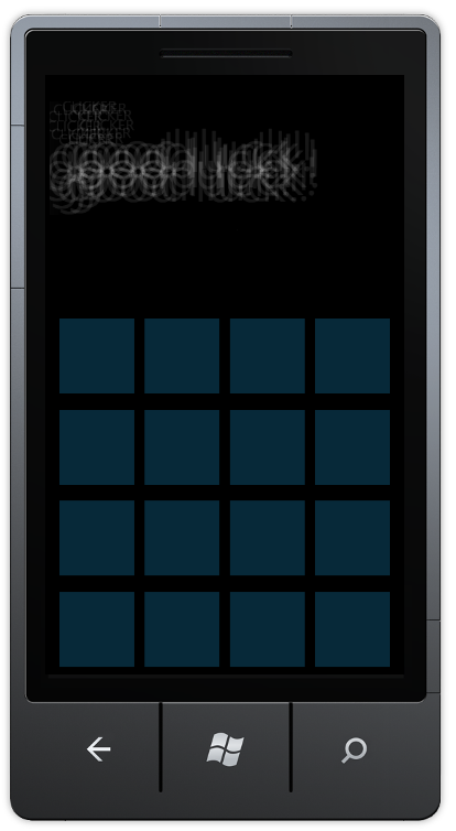 During development of a brand new Windows Phone 7 application, I ran into a dilemma. The application is a game in which the user needs to memorize a number of fields. After the playing board has been displayed for a limited amount of time, the user needs to find particular fields by clicking on them. The playing board looks like this: